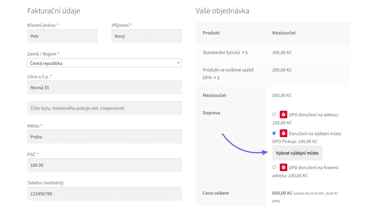 Plugin DPD po novom umožňuje zvoliť umiestnenie tlačidla na otvorenie widgetu s mapou v pokladni. Tlačidlo môže byť umiestnené na konci zoznamu dopravcov alebo ho po novom možno zobraziť priamo pod daným spôsobom dopravy.